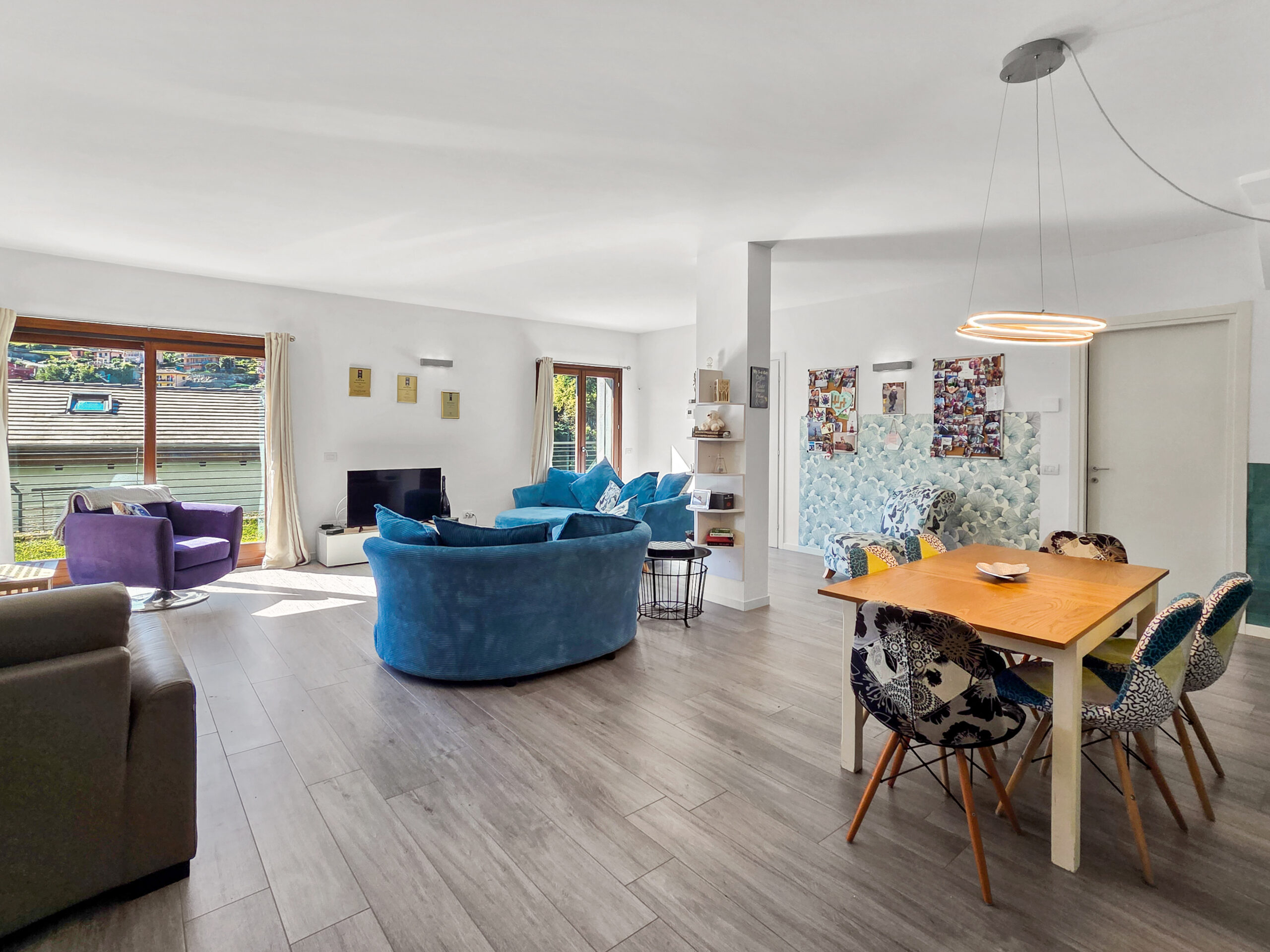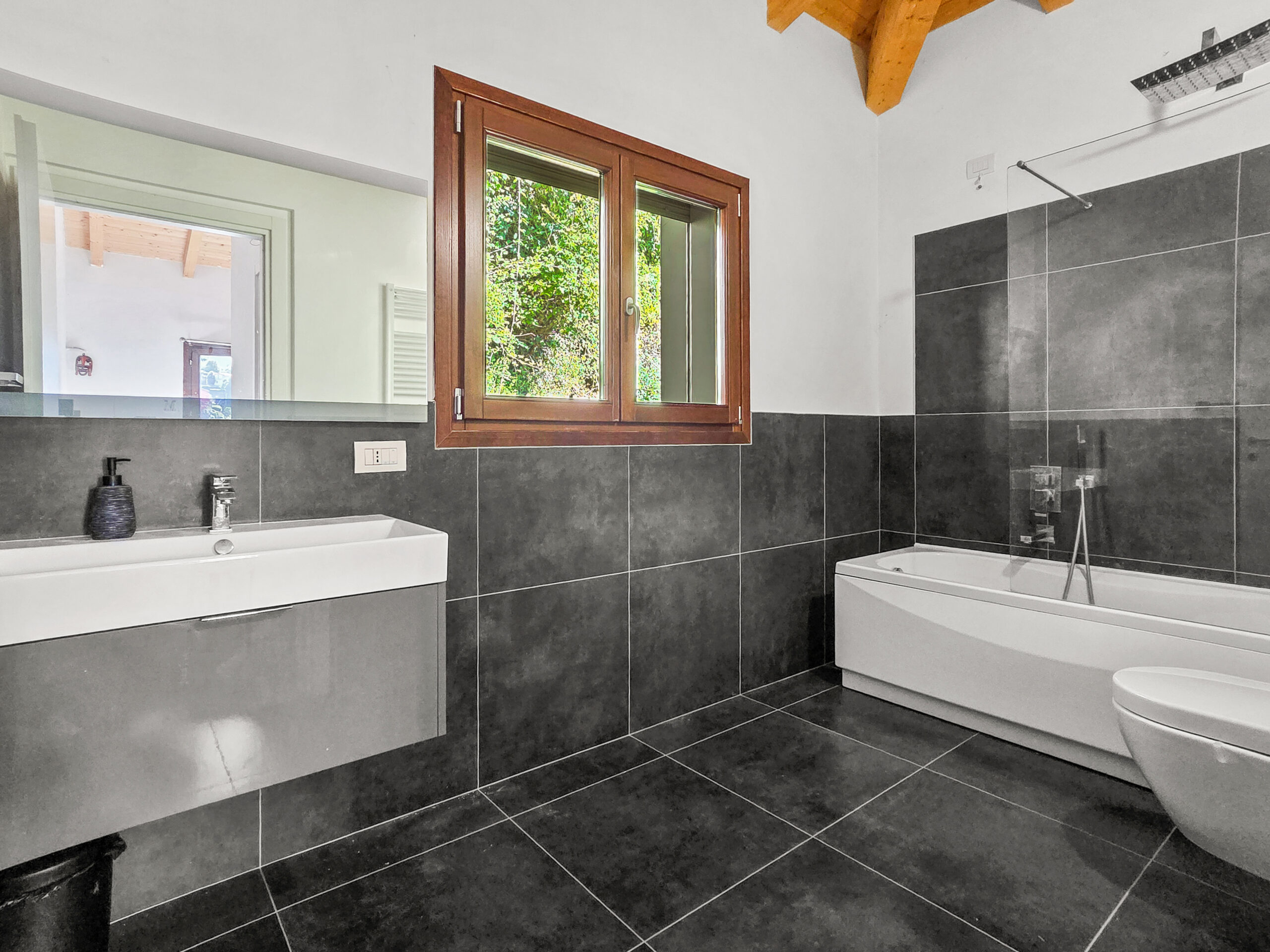 Die Villa ist von einem privaten Garten umgeben, der Privatsphäre garantiert und eine harmonische Verbindung zur umliegenden Natur schafft. Die Innenräume erstrecken sich über zwei Ebenen und zeichnen sich durch großzügige, helle und gut geschnittene Räume aus.