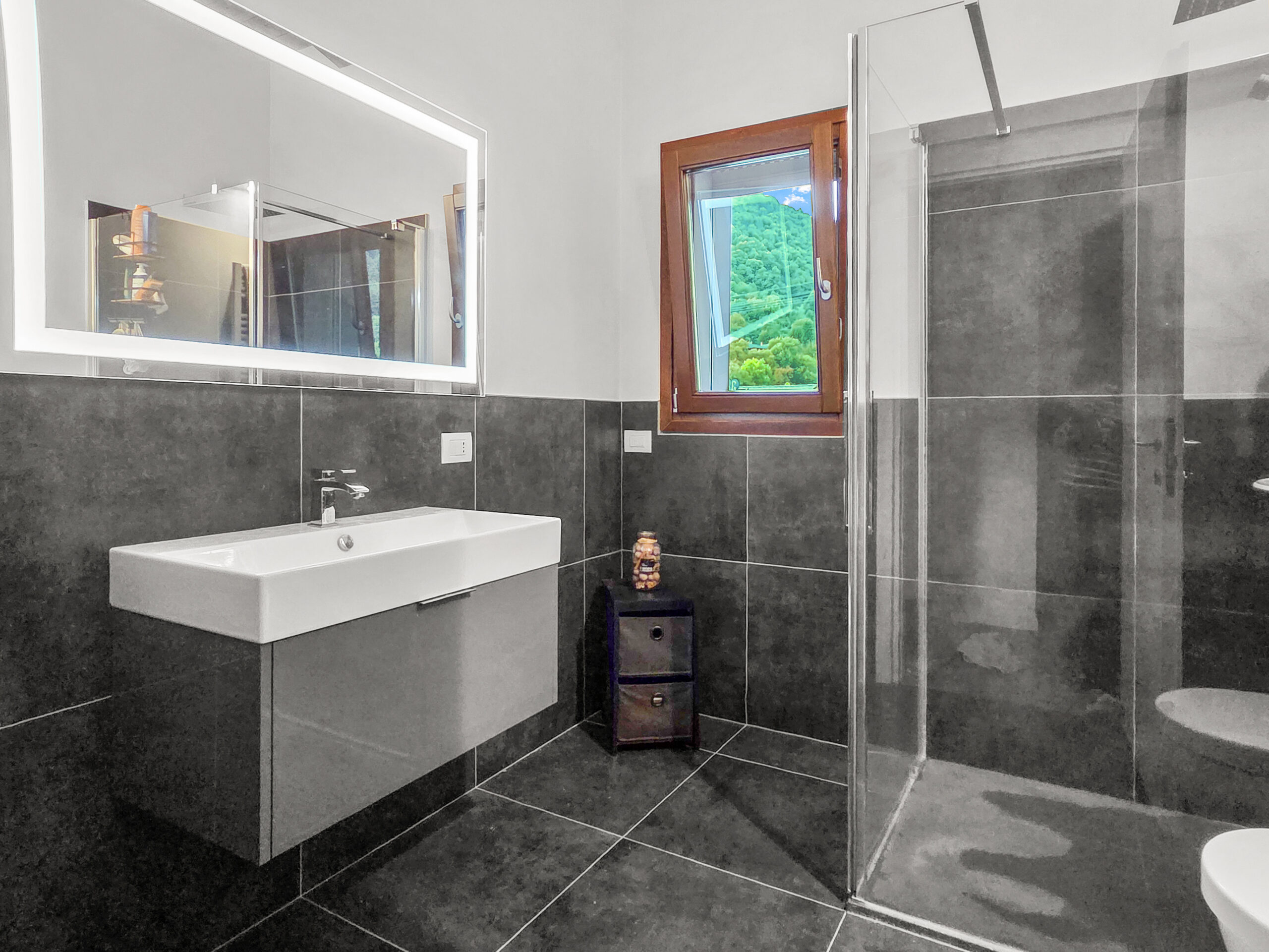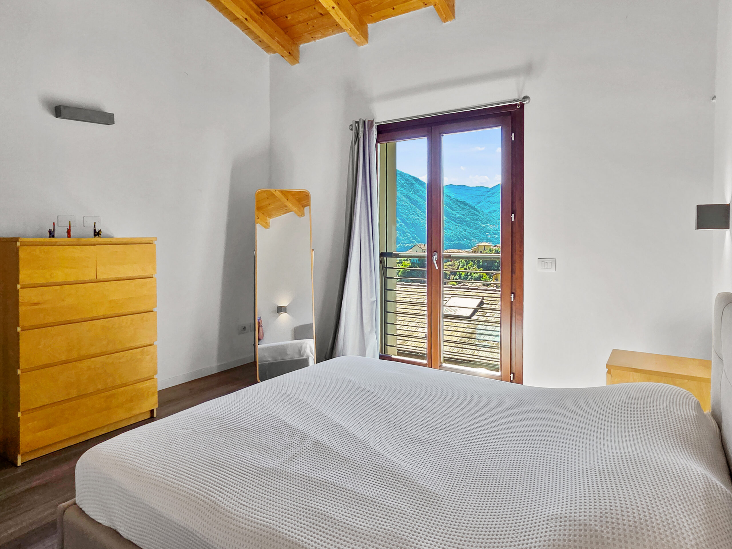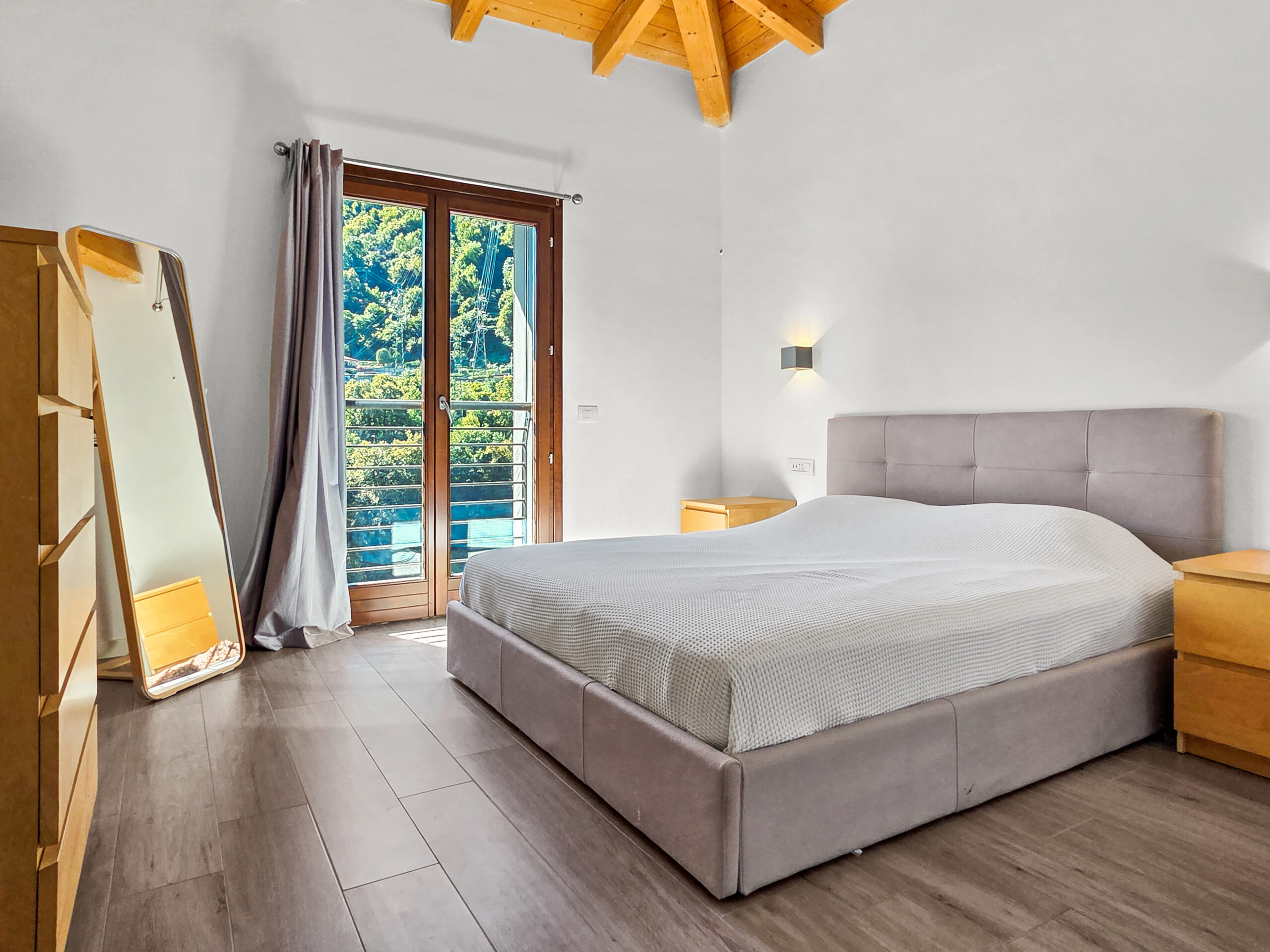 Das Obergeschoss beherbergt den Schlafbereich mit drei Schlafzimmern, darunter eine Master-Suite mit eigenem Bad und begehbarem Kleiderschrank, ein weiteres Badezimmer sowie einen praktischen Abstellraum. Von dieser Etage genießt man einen schönen Blick auf den See, der der Immobilie zusätzlichen Charme verleiht und ihre Lage weiter aufwertet.