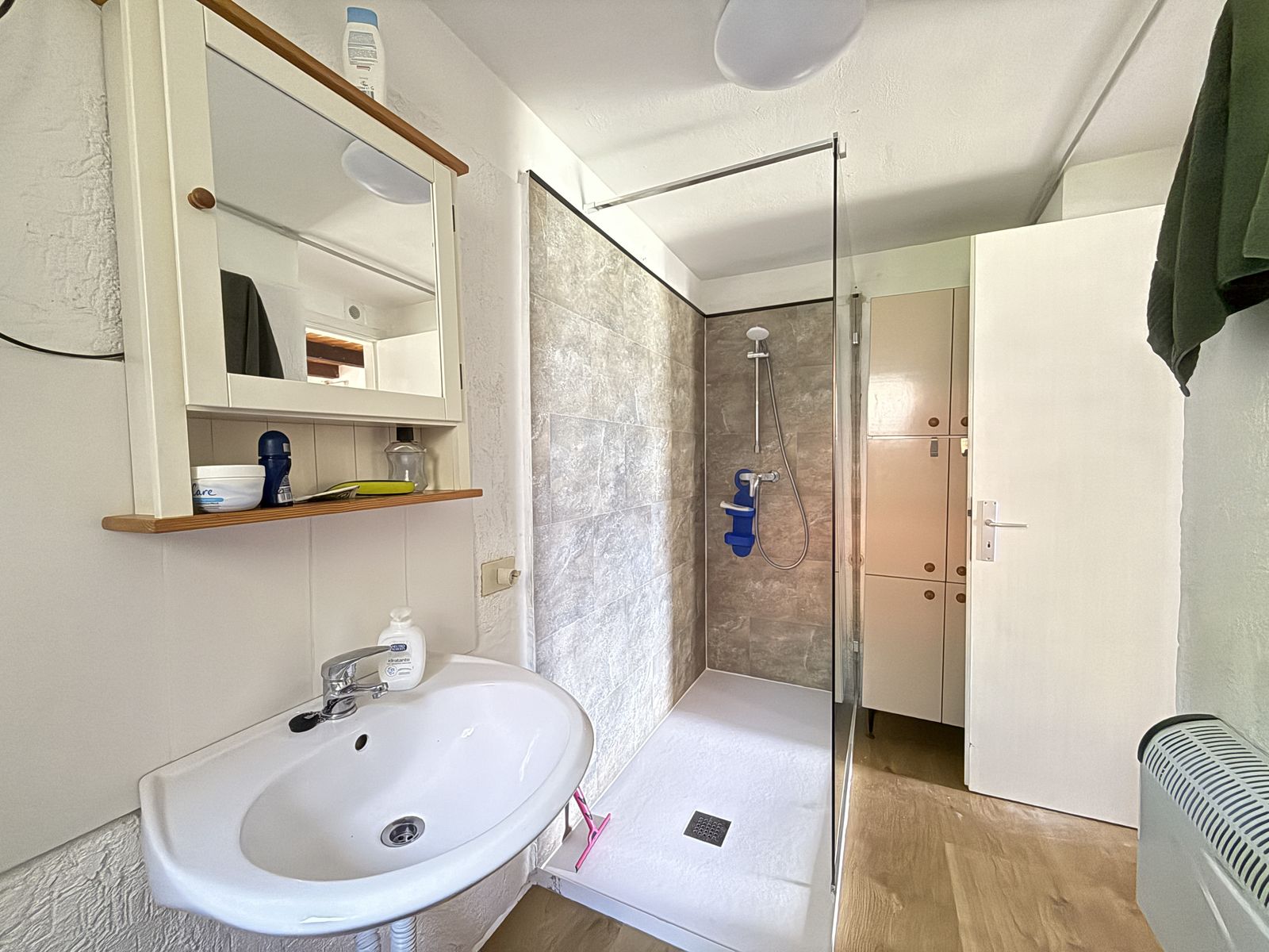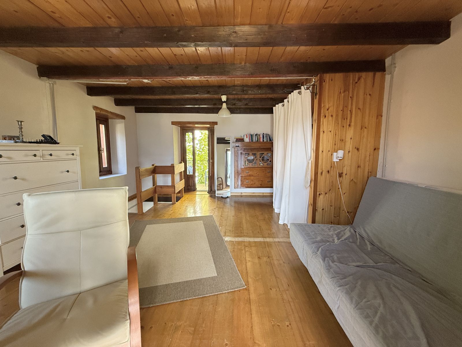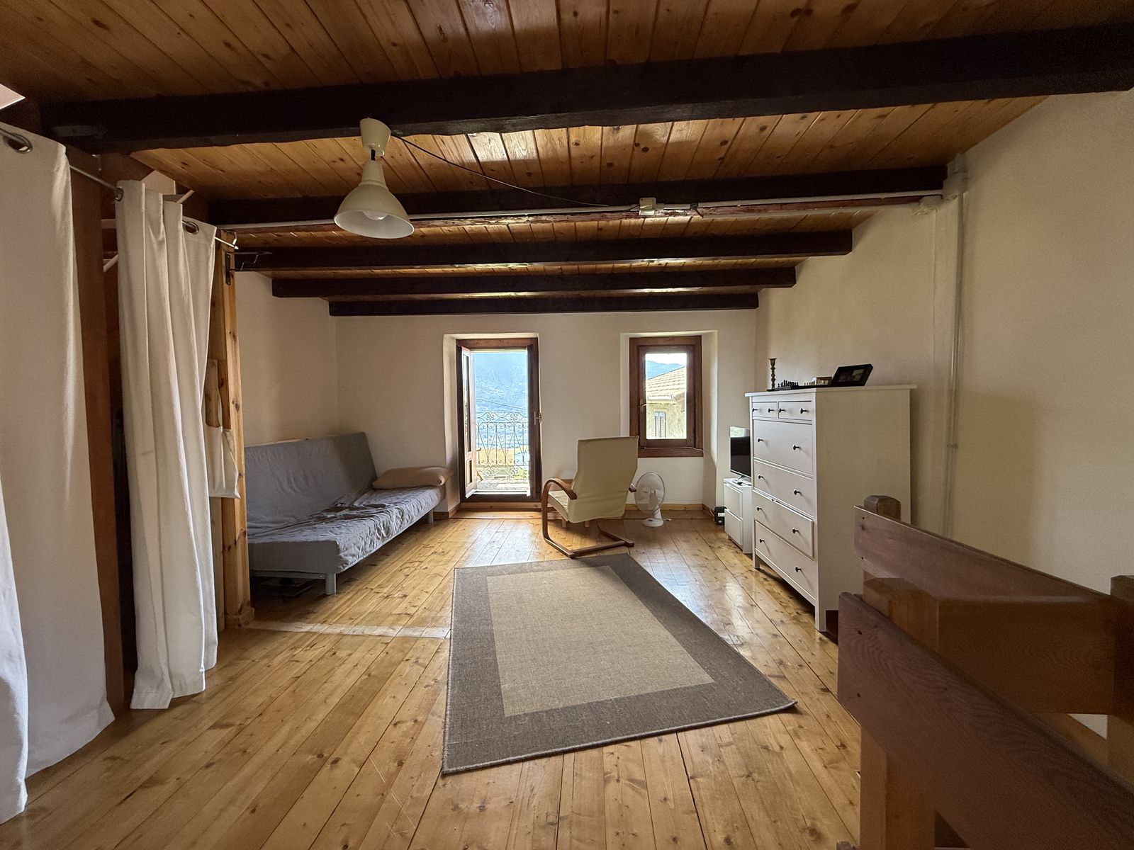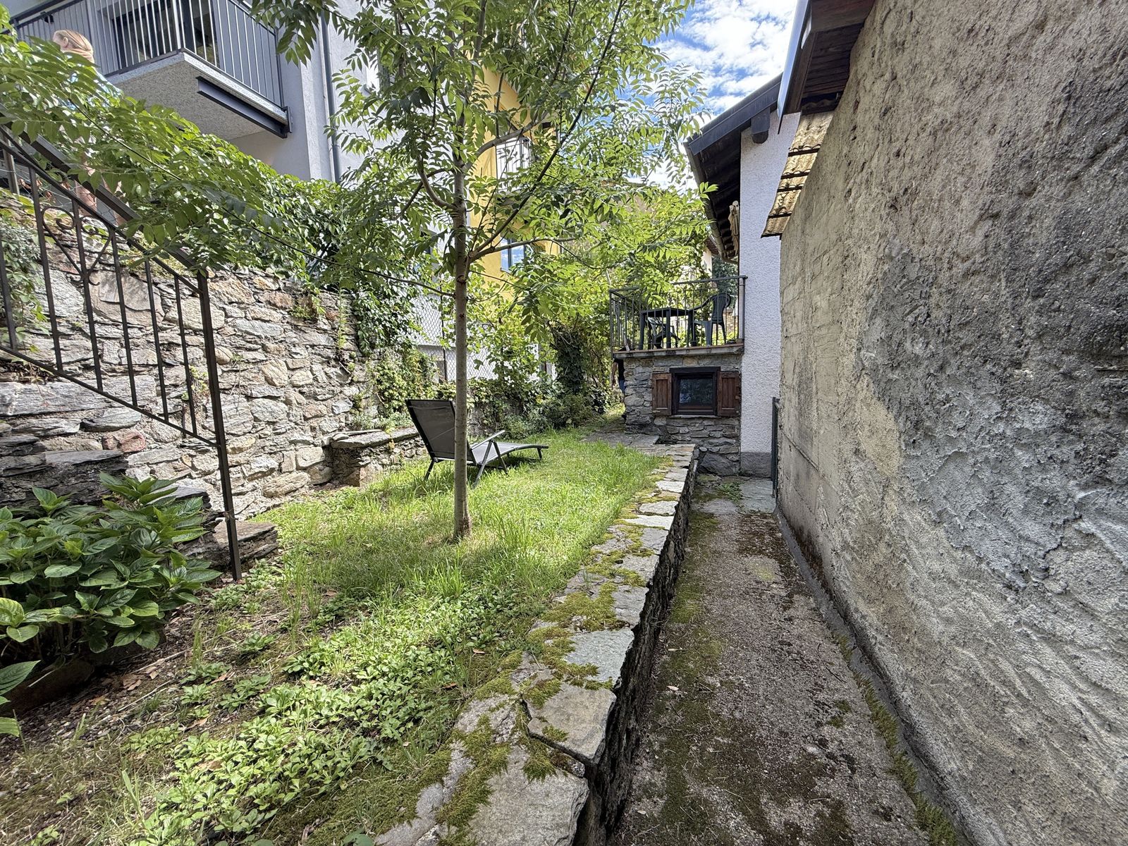 Im Hochparterre liegt der Wohnbereich mit einer gemütlichen Küche (mit lombardischem Terrakottaboden), einem Holzofen und einem Fensterbad mit Dusche.