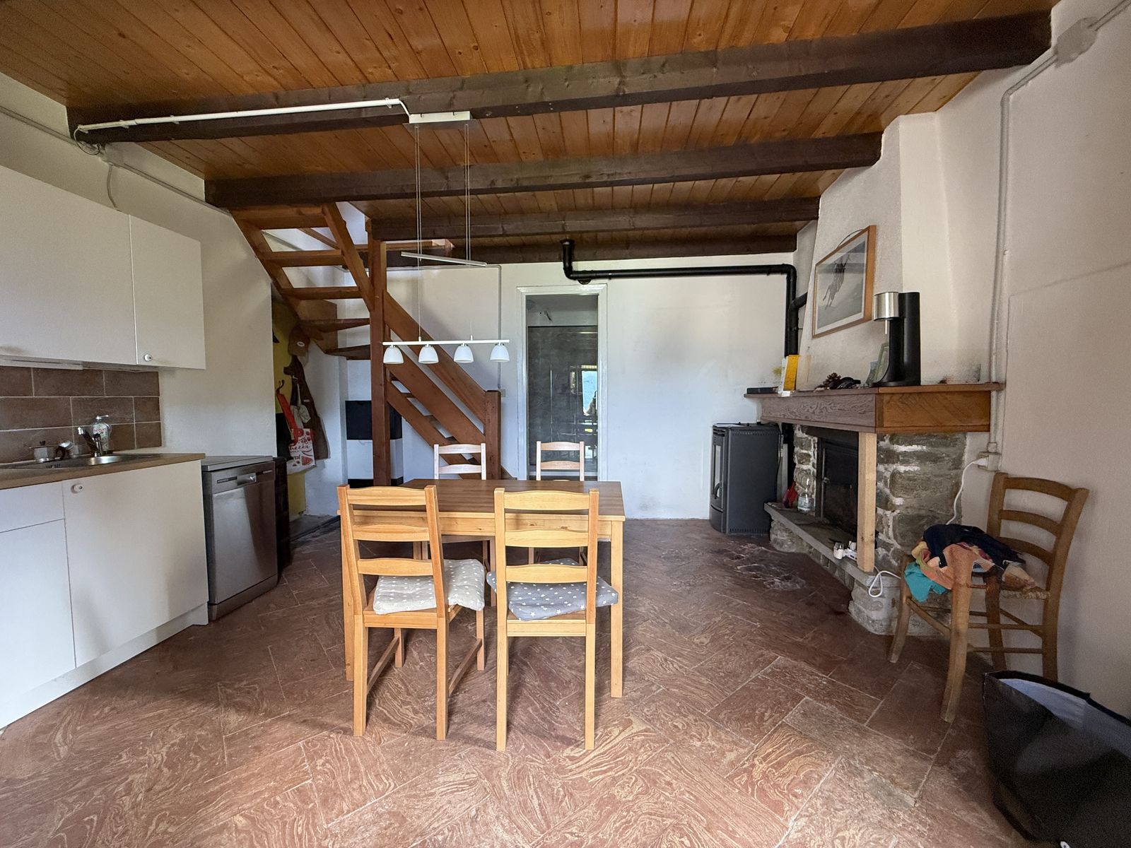 Das Haus ist ausgestattet mit Holzfenstern mit Doppelverglasung, 6 cm Dachisolierung, Holzbalkendecken, Pelletofenheizung und einem elektrischen Boiler für Warmwasser.