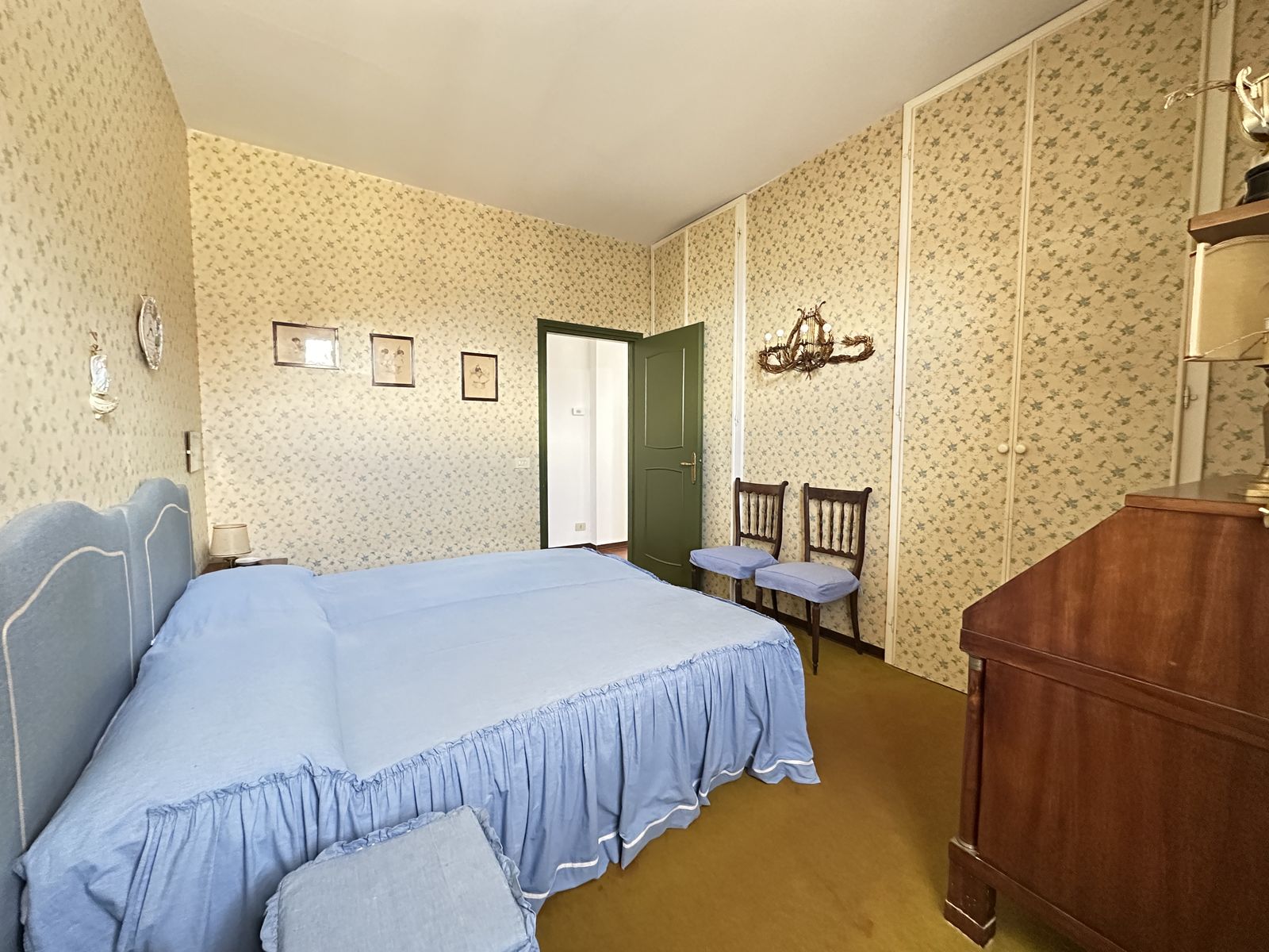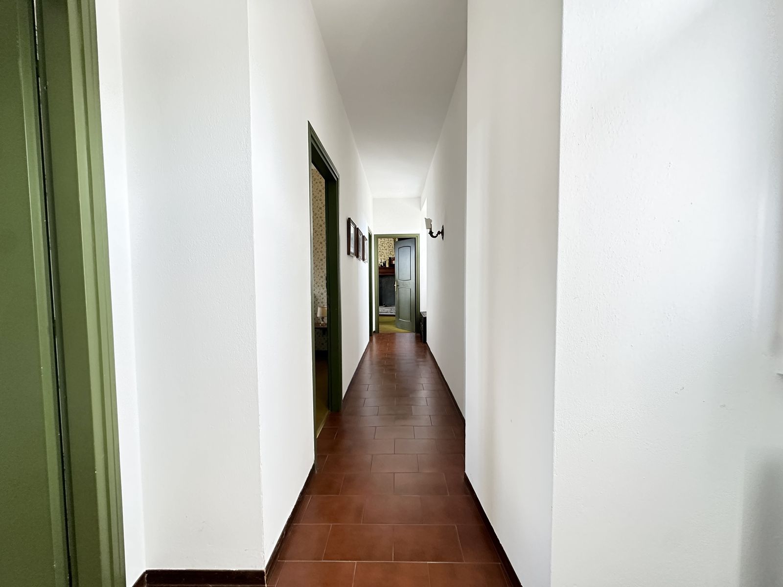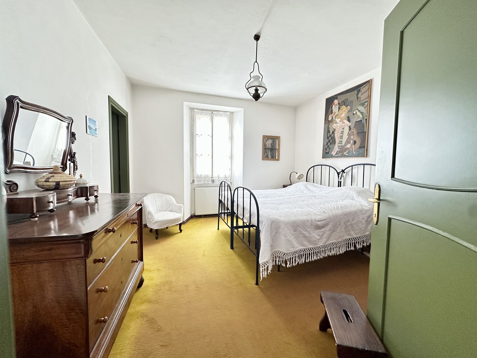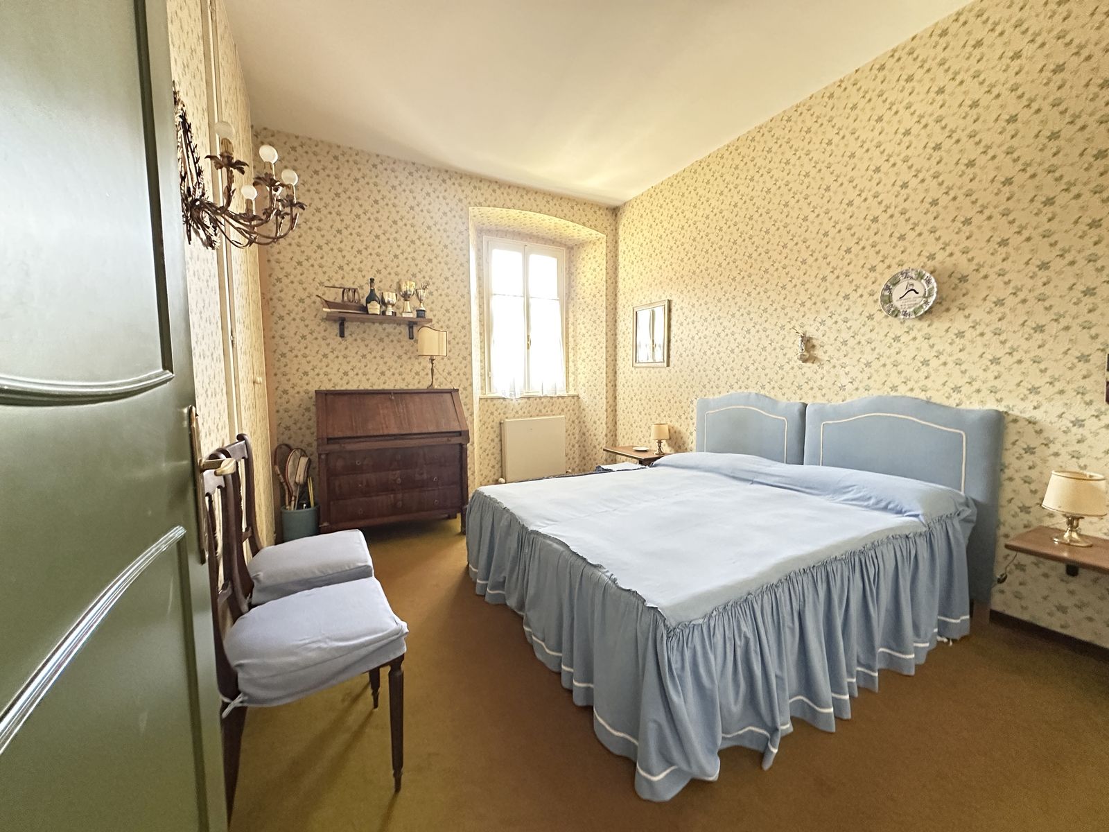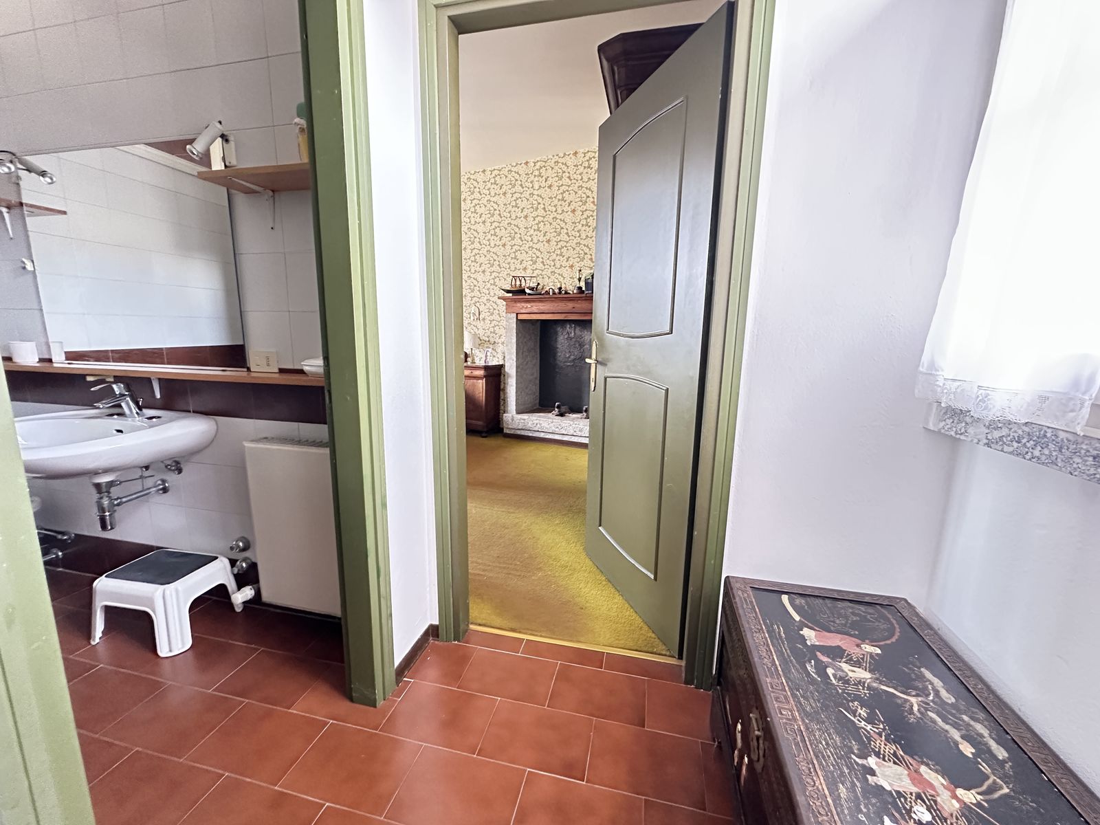 Erstes Obergeschoss – Helles Wohnzimmer mit originalem Steinkamin, Esszimmer, separate Küche, drei Doppelzimmer und zwei Badezimmer. Von hier aus gelangt man in den wunderschönen Privatgarten von ca. 250 qm – eine grüne Oase im Herzen des historischen Zentrums, ideal für Mahlzeiten im Freien und entspannte Stunden.