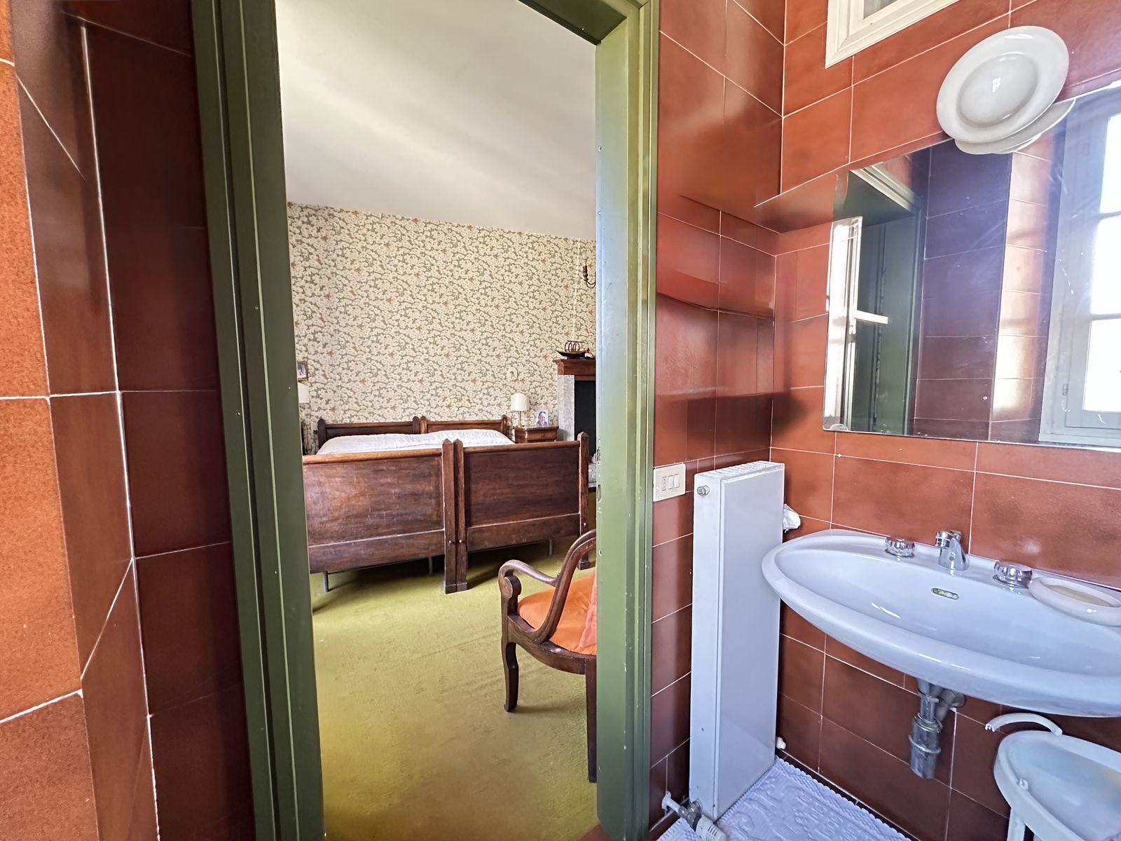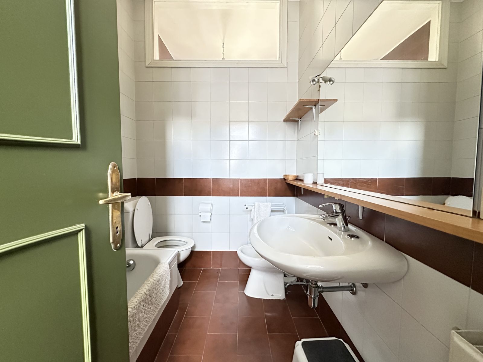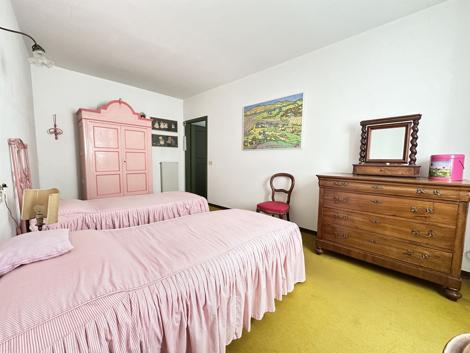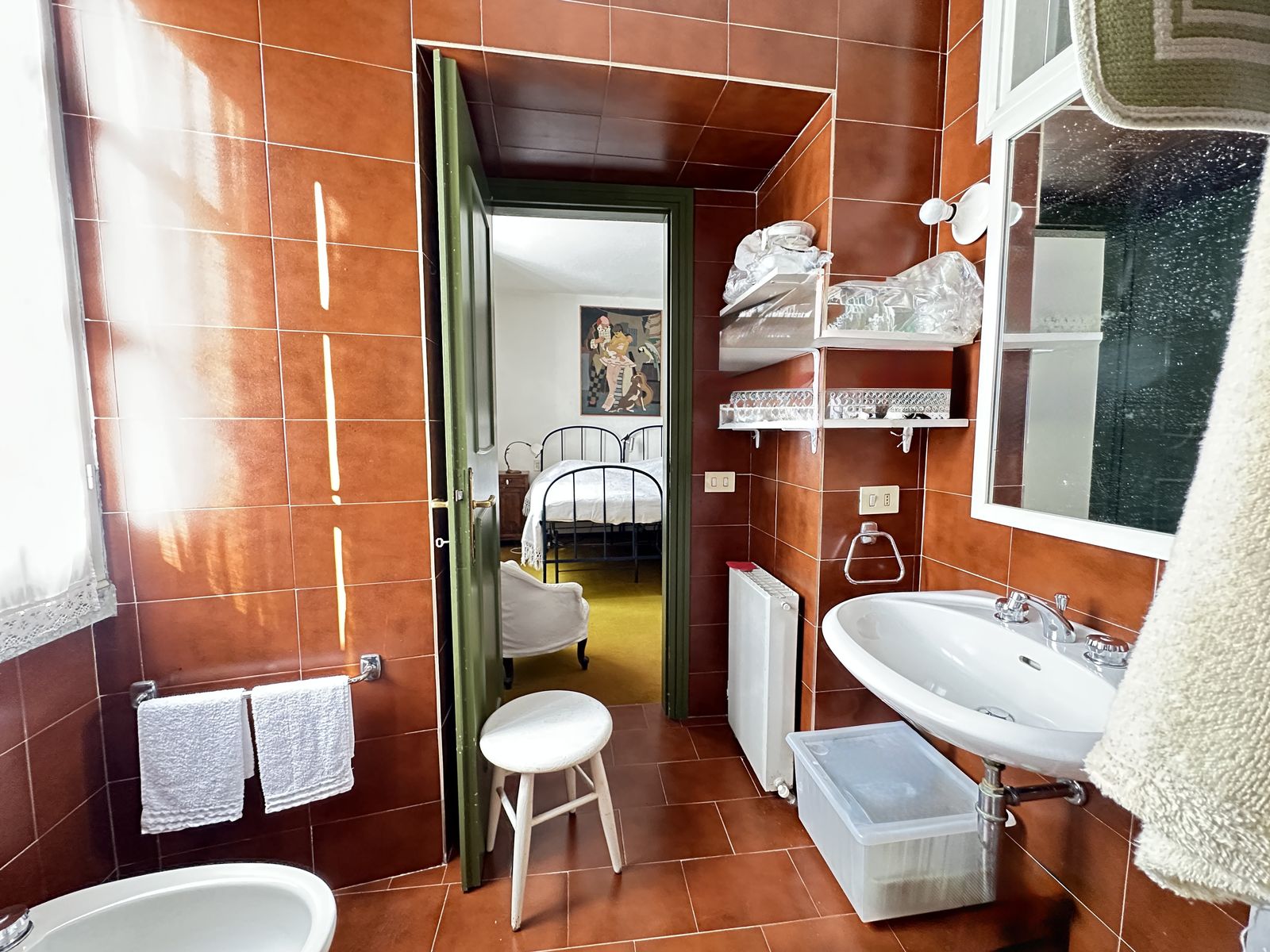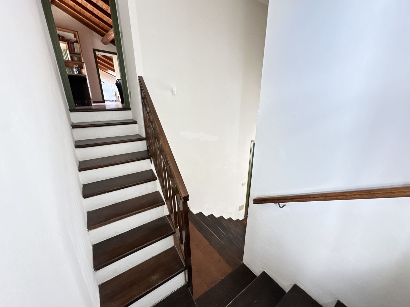Erstes Obergeschoss – Helles Wohnzimmer mit originalem Steinkamin, Esszimmer, separate Küche, drei Doppelzimmer und zwei Badezimmer. Von hier aus gelangt man in den wunderschönen Privatgarten von ca. 250 qm – eine grüne Oase im Herzen des historischen Zentrums, ideal für Mahlzeiten im Freien und entspannte Stunden.