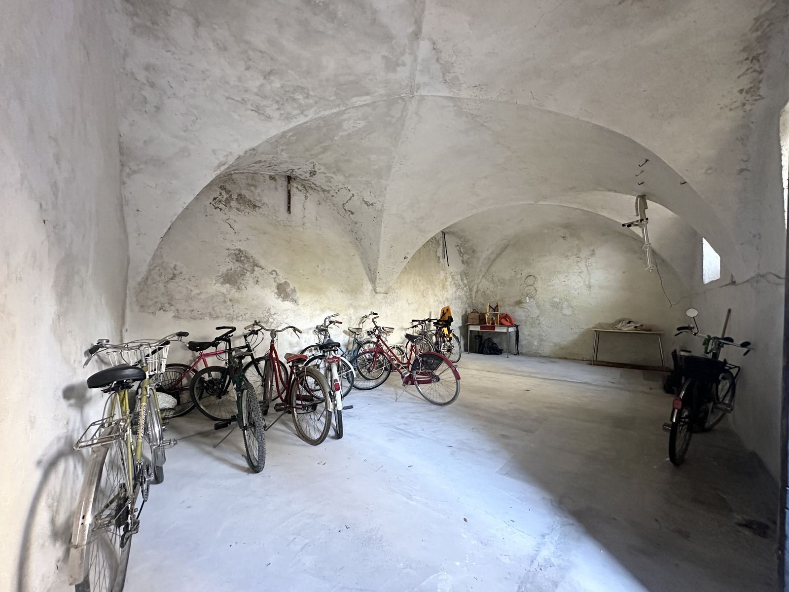Erdgeschoss – Großzügiger Eingangsbereich, großer Hobby-/Tavernenraum mit Naturstein-Gewölbe sowie ein historischer Steinkeller im Untergeschoss. Zusätzlich gibt es einen geräumigen Abstellraum mit separatem Zugang von der kleinen Straße, ideal für Fahrräder, Motorräder oder Seeequipment.