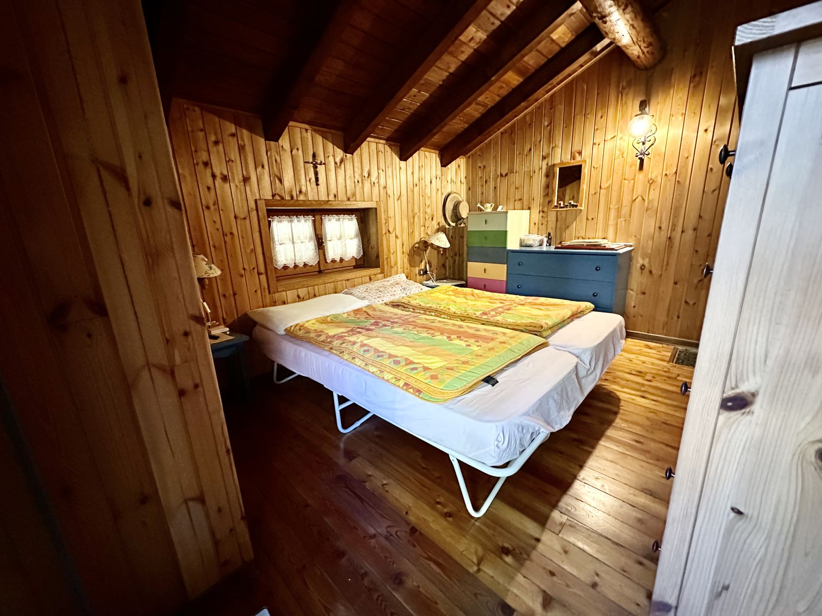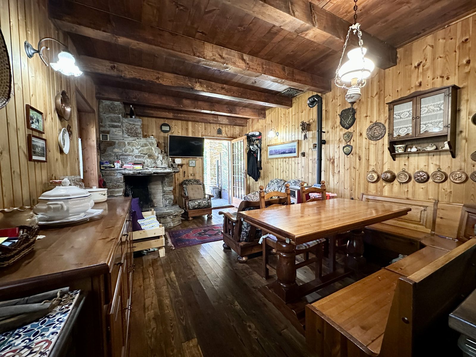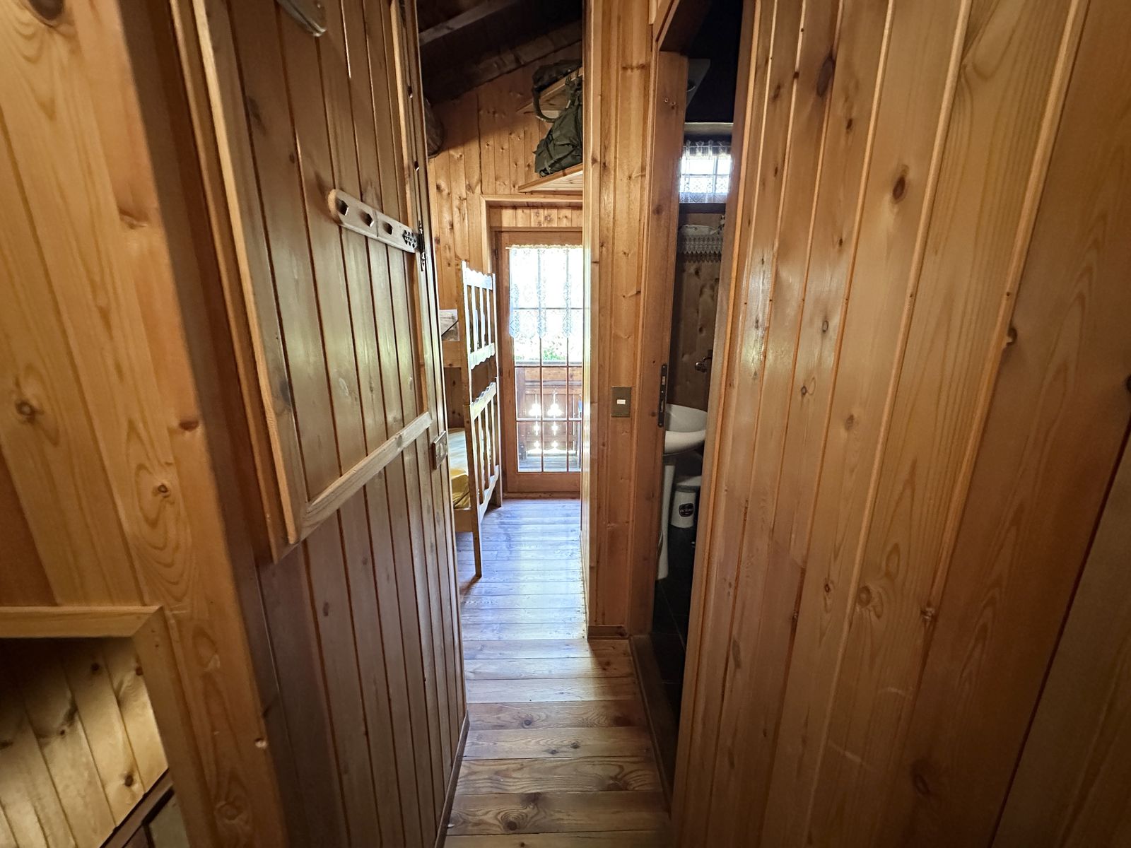 typische Bergdetails in Holz und Stein, Holzböden und Fenster mit Doppelverglasung.