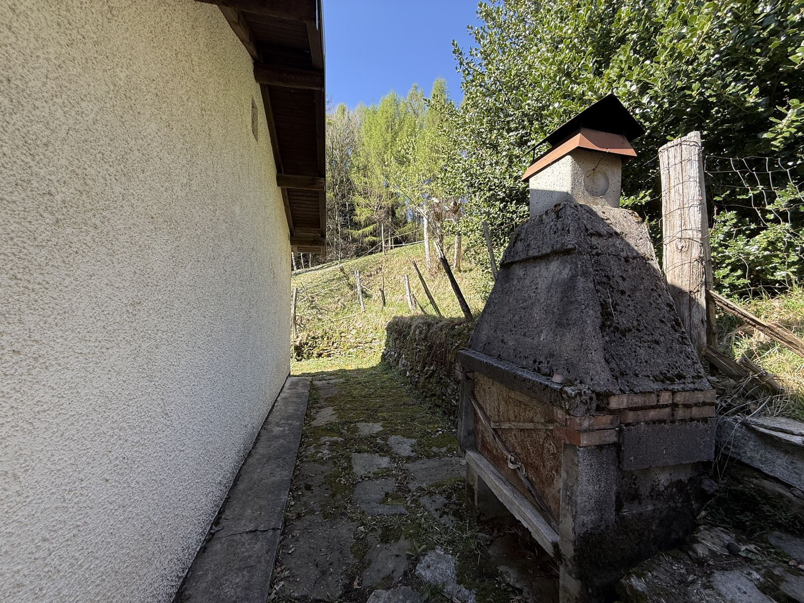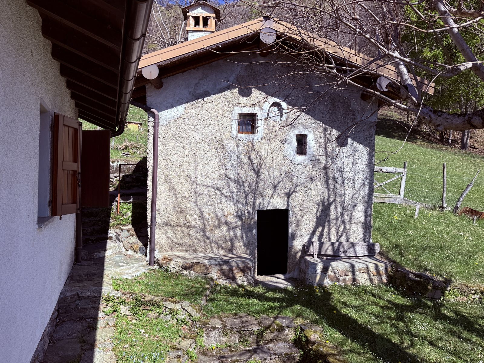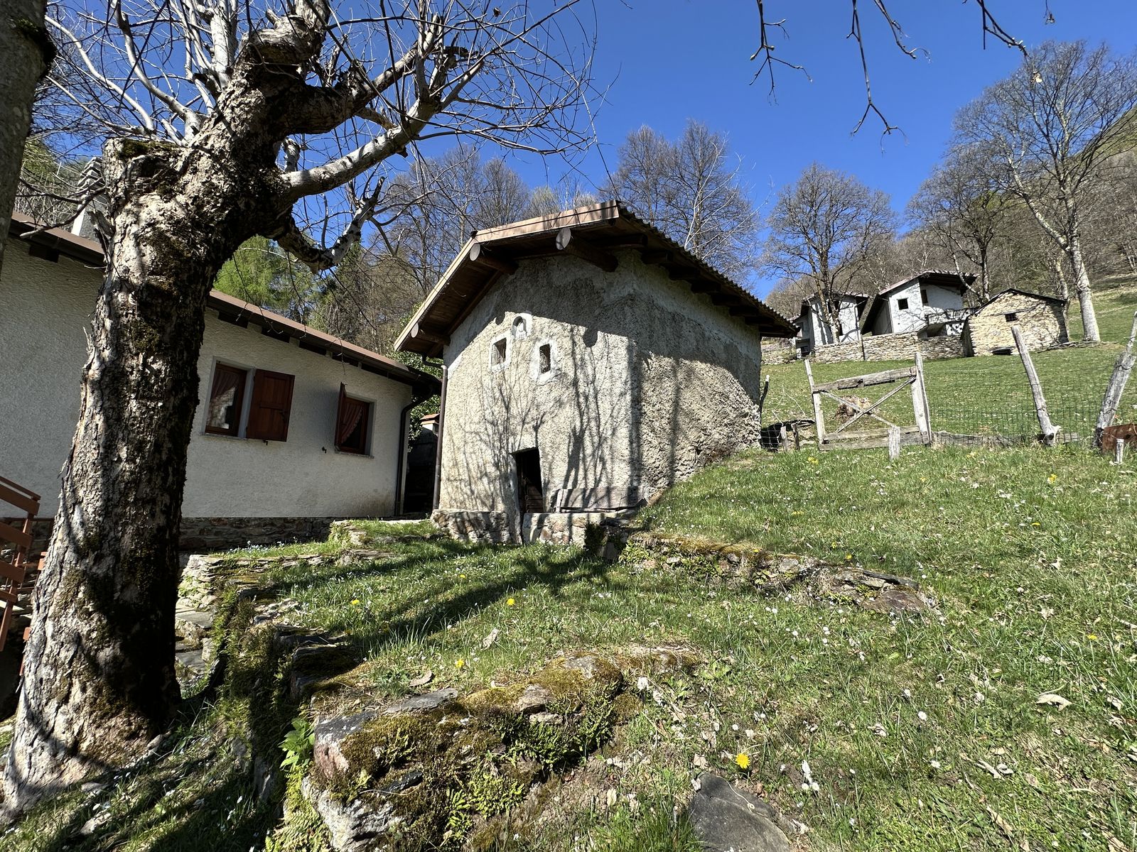 Die Immobilie liegt in einer landschaftlich reizvollen Umgebung und umfasst ein Grundstück mit Wald von insgesamt ca. 2.800 m², davon etwa 400 m² eingezäunt rund um das Haus. Zusätzlich gehört ein unabhängiges Rustico von ca. 30 m² auf zwei Ebenen dazu, mit einem charmanten Gewölbekeller aus Stein und einem oberen Abstellraum (Dach erneuert).