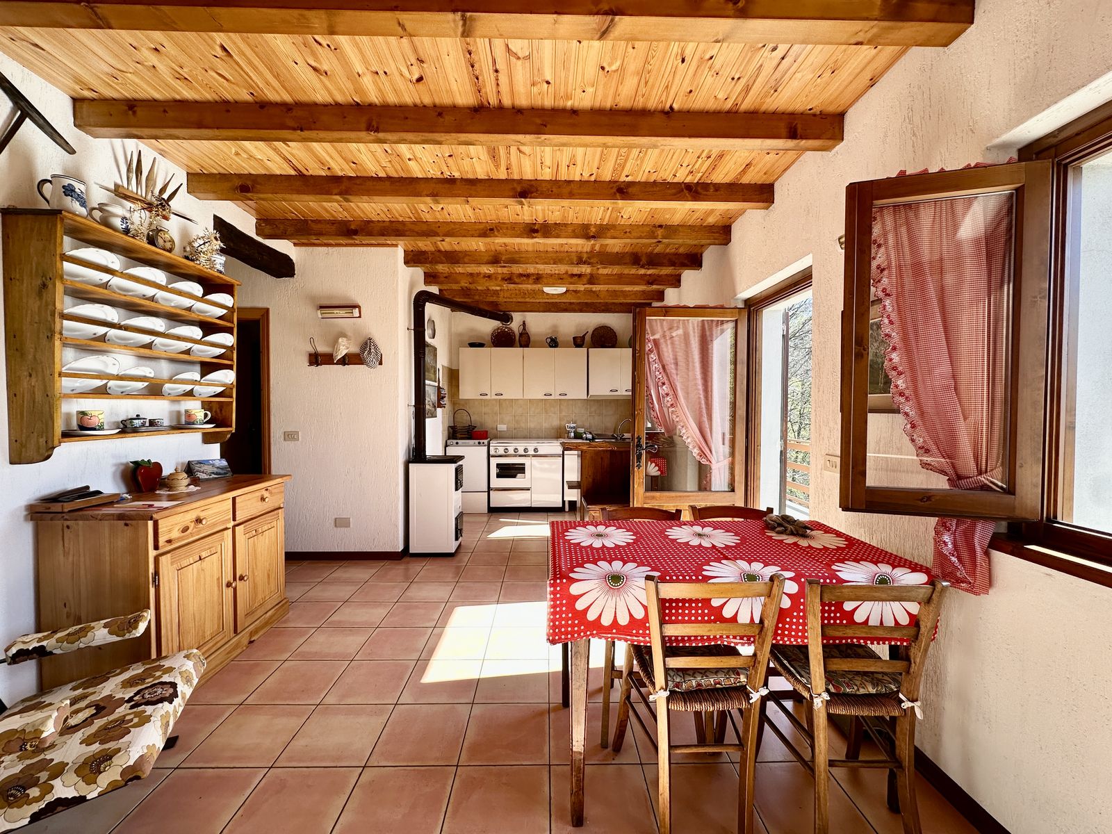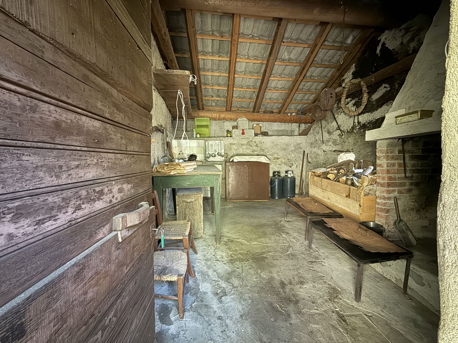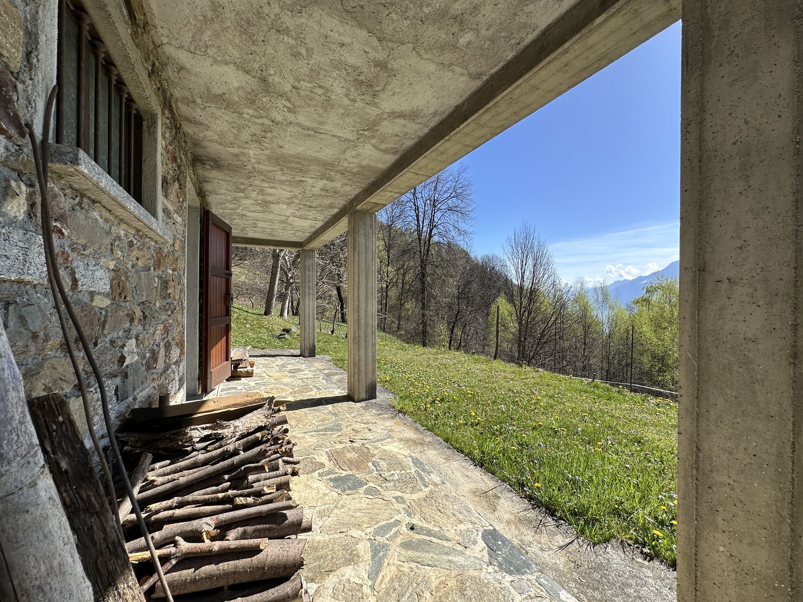 Die Immobilie liegt in einer landschaftlich reizvollen Umgebung und umfasst ein Grundstück mit Wald von insgesamt ca. 2.800 m², davon etwa 400 m² eingezäunt rund um das Haus. Zusätzlich gehört ein unabhängiges Rustico von ca. 30 m² auf zwei Ebenen dazu, mit einem charmanten Gewölbekeller aus Stein und einem oberen Abstellraum (Dach erneuert).