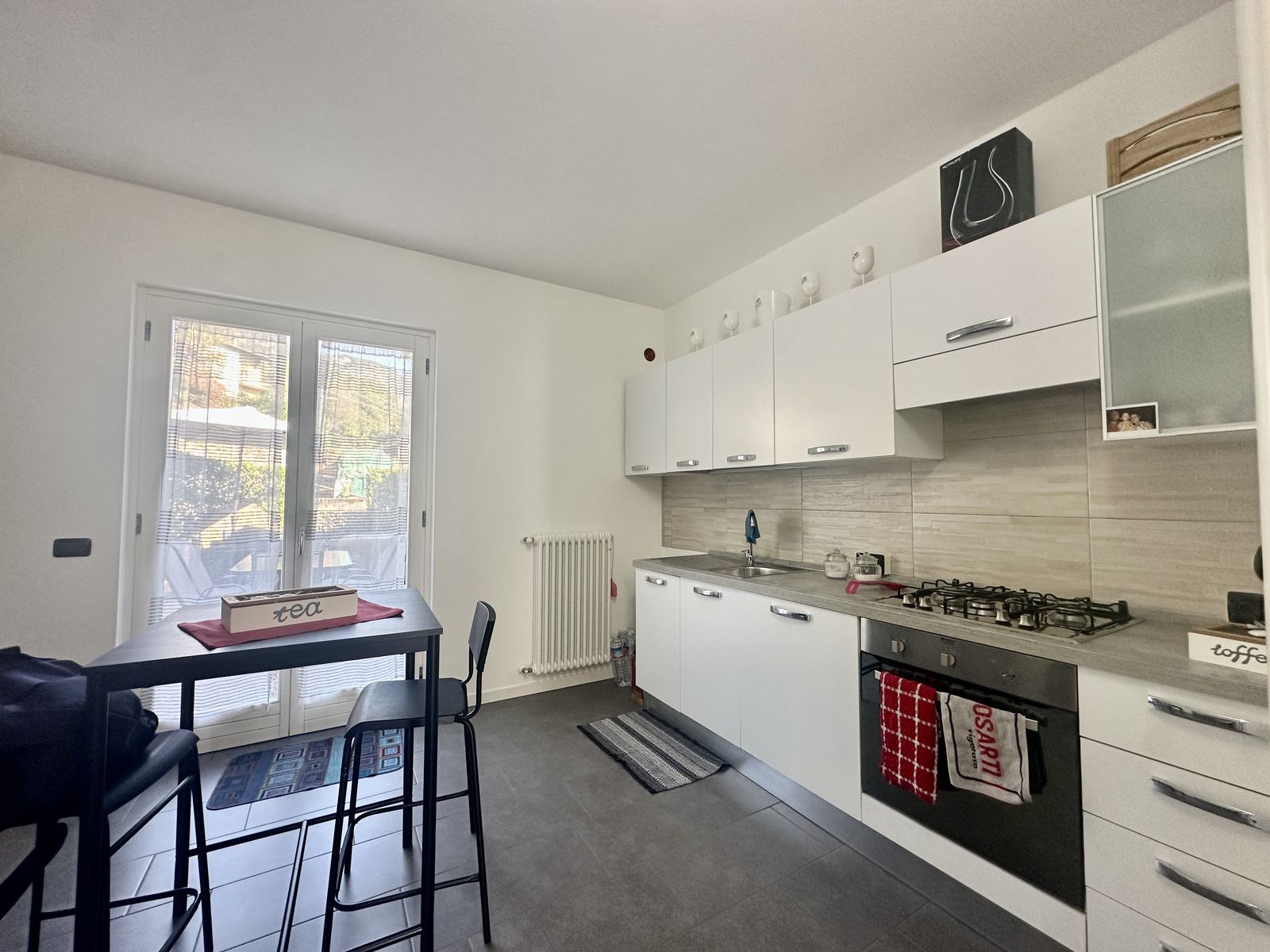 Erdgeschoss: großzügiges Wohnzimmer mit Zugang zur 10 m² großen Südterrasse mit Blick auf den Gemeinschaftspool, Wohnküche mit Ausgang zum ca. 30 m² großen privaten Garten mit Seeblick, Badezimmer mit Dusche und Waschbereich.