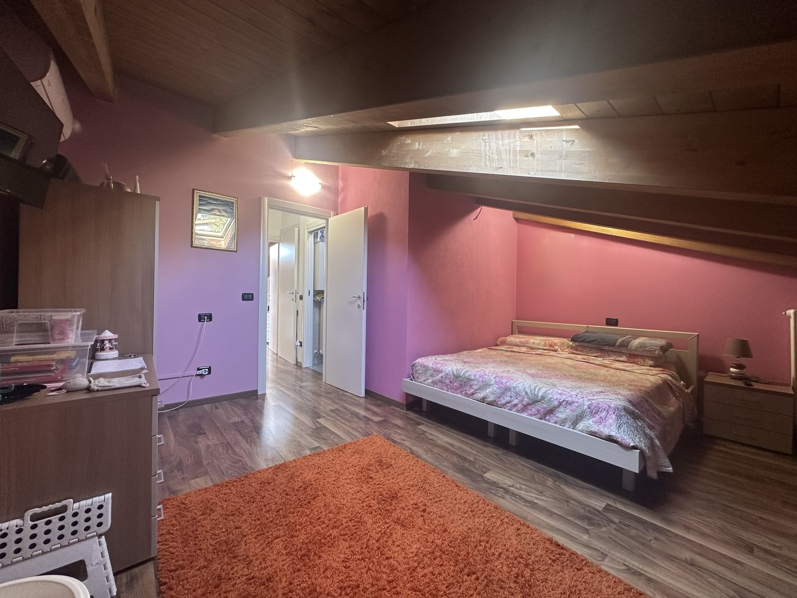 Dachgeschoss (nutzbar, aber nicht als Wohnfläche anerkannt): zwei große Räume mit sichtbaren Holzbalken (derzeit als Schlafzimmer genutzt), zweites Badezimmer mit Dusche und Balkon mit herrlichem Seeblick.