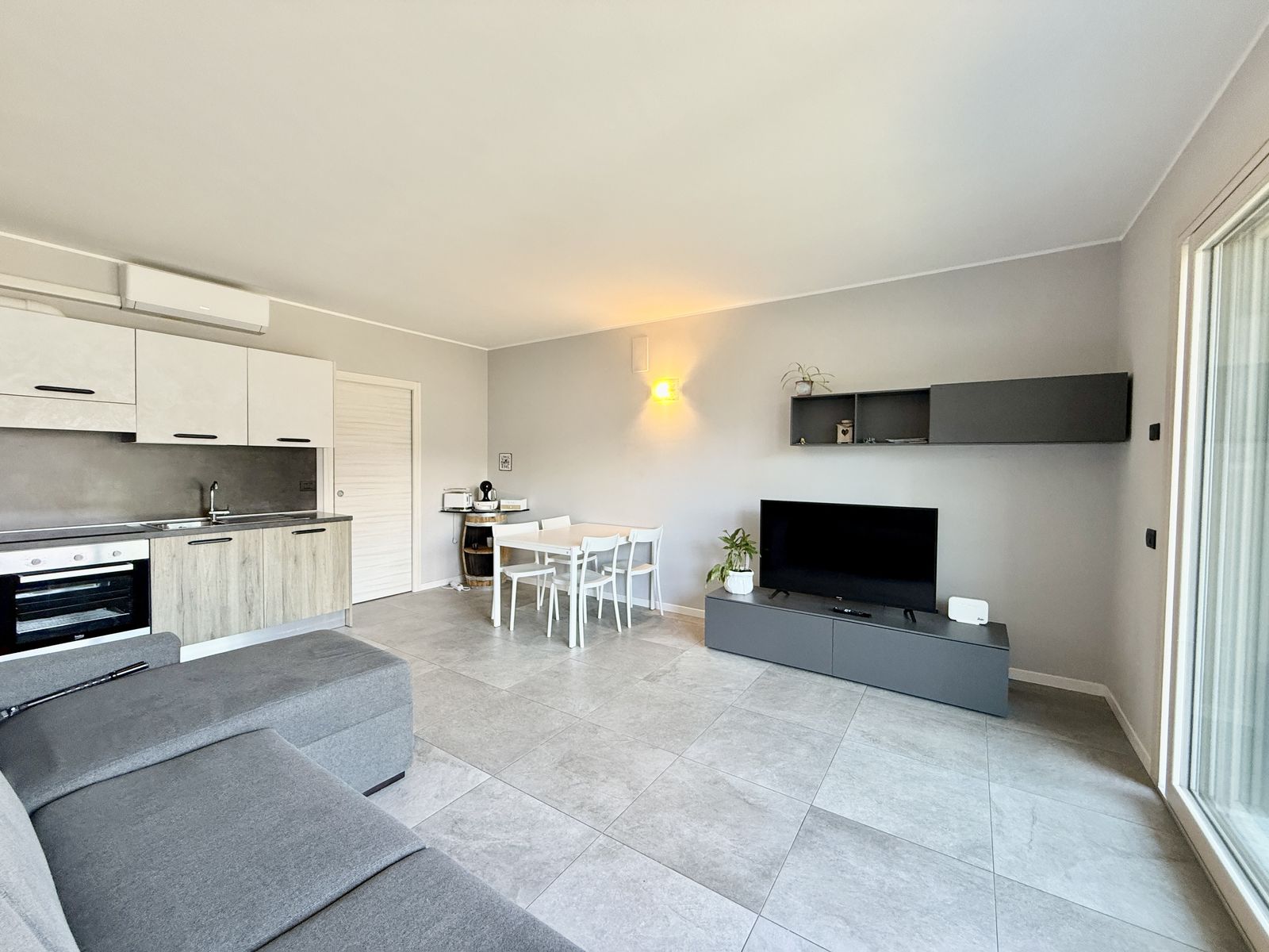 Die Katasterfläche beträgt ca. 62 m². Der Wohnbereich ist hell und großzügig gestaltet. Das Wohnzimmer mit offener Küche verfügt über eine große Fensterfront mit direktem Zugang zum Garten. Der Schlafbereich umfasst ein geräumiges Doppelzimmer und ein Badezimmer mit Dusche.
