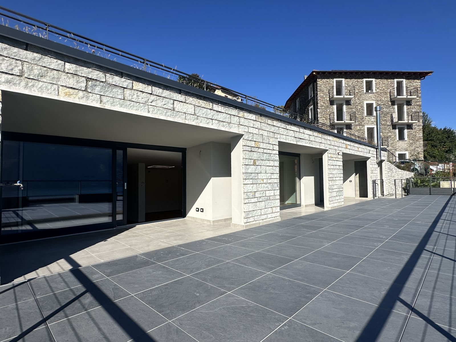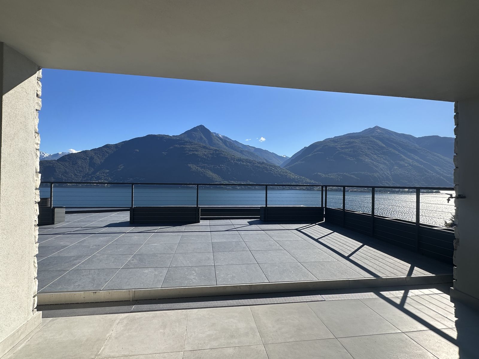 weite überdachte Arkaden mit direktem Zugang zur Dachterrasse mit spektakulärem Seeblick.