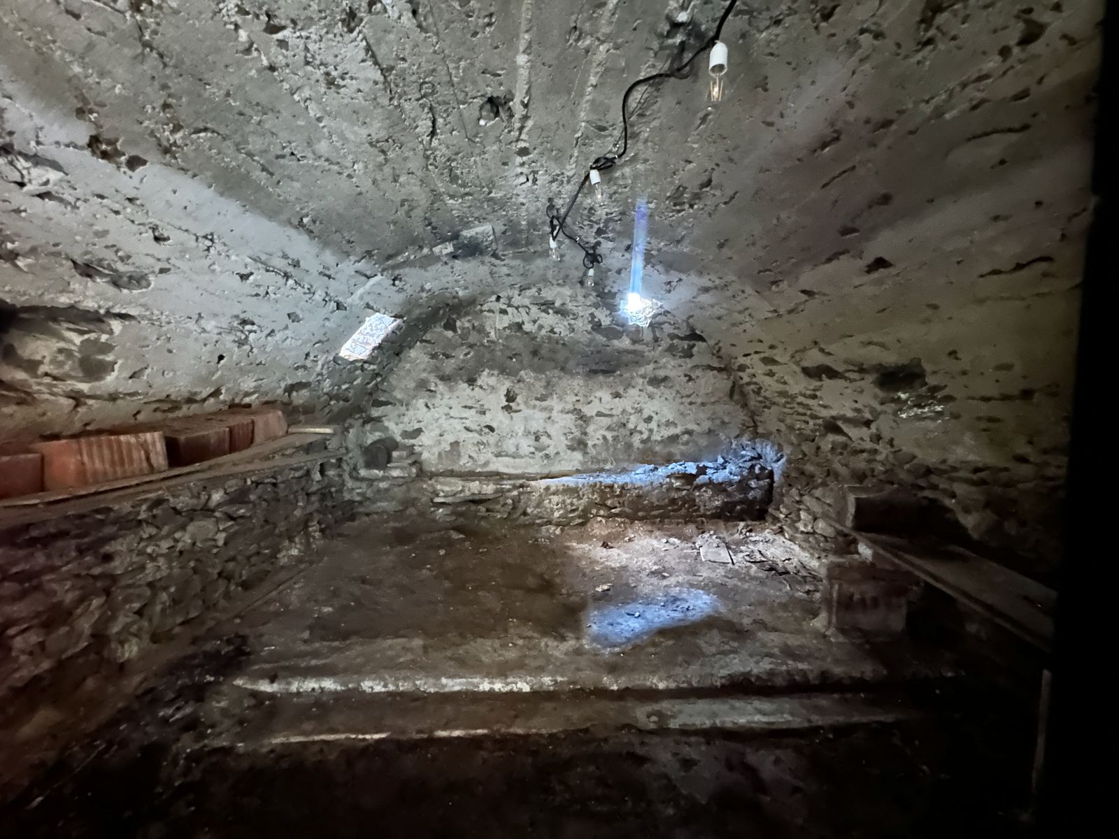 Im Erdgeschoss befinden sich zwei Gewölbekeller mit originalen Steinbögen, ein Durchgangsbereich sowie zwei Abstellräume. Ein kleiner privater Außenbereich ergänzt diese Ebene und bietet zusätzlichen Nutzungskomfort.