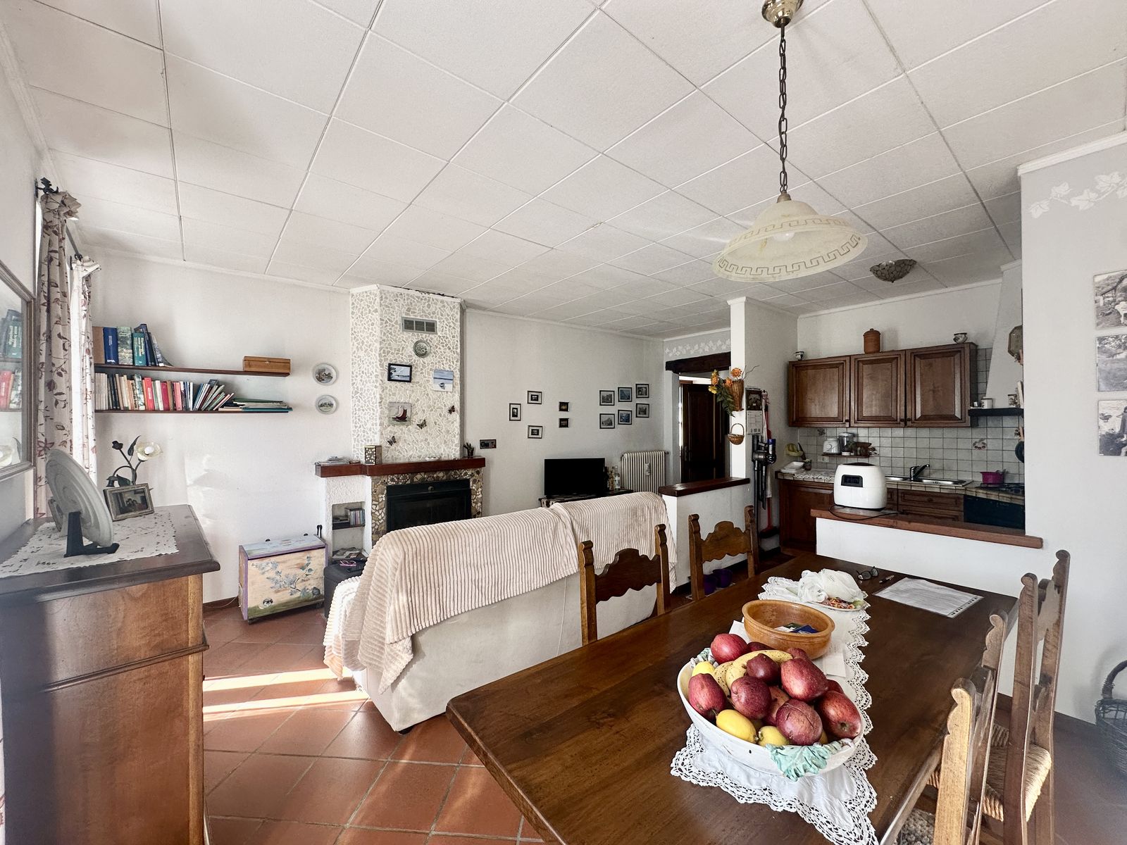 Im Erdgeschoss (Höhe 2,65 m) befindet sich ein großzügiger und heller Tavernenraum mit Kamin, ein praktischer Abstellraum sowie ein großzügiger Eingangsbereich, der in das Obergeschoss führt.