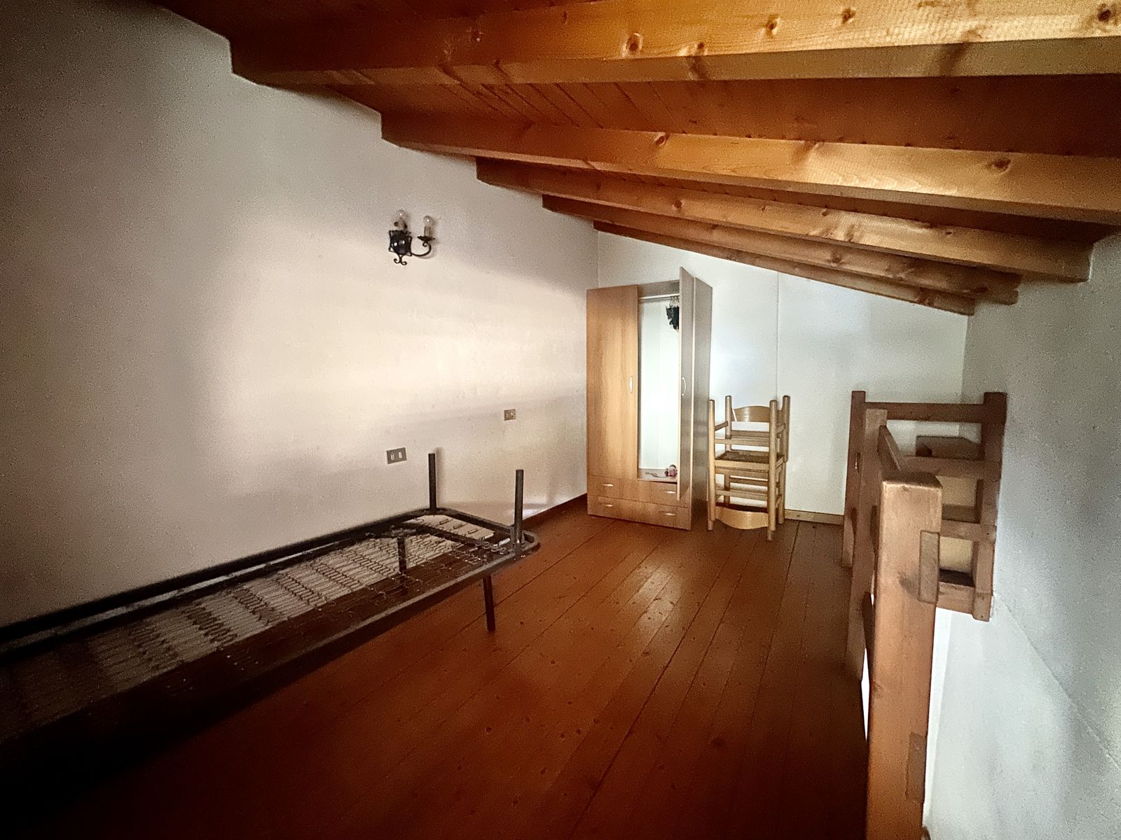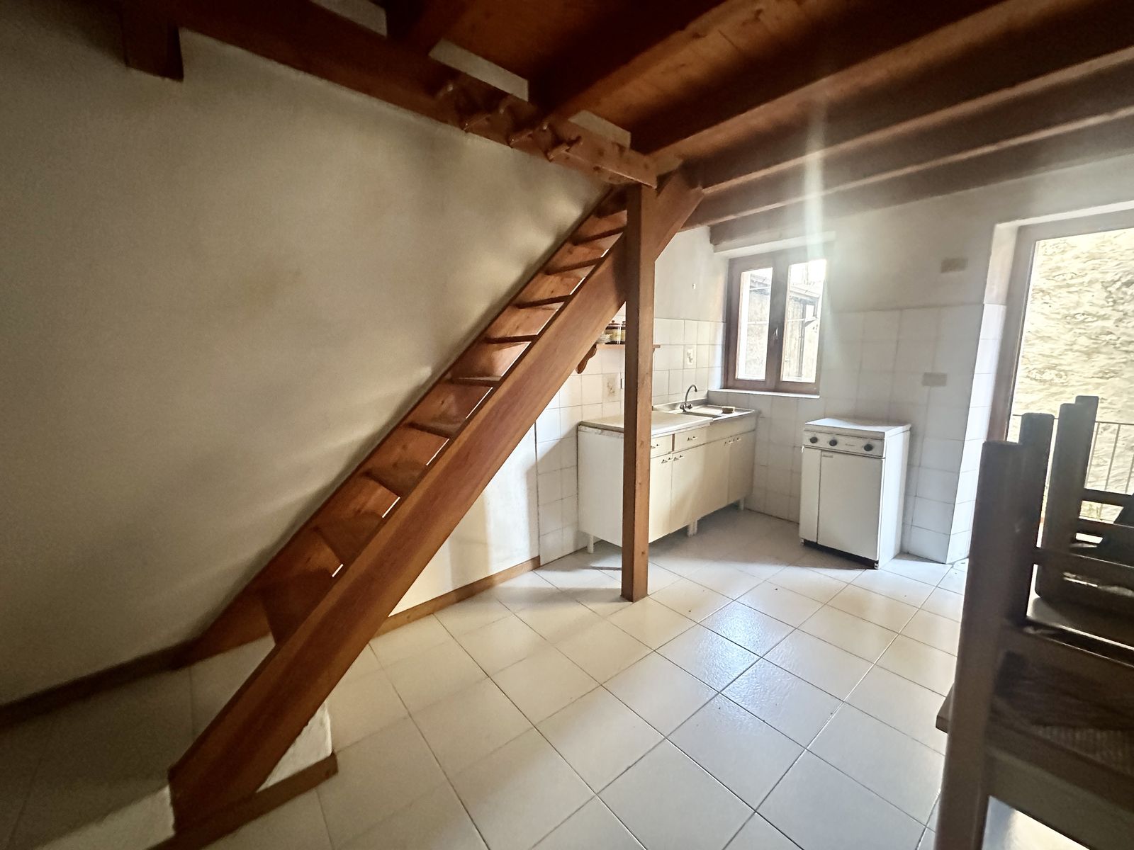 Das Obergeschoss beherbergt eine voll ausgestattete Küche (inklusive Möbel) mit zwei Französischen Türen, die auf einen Balkon mit Seeblick führen, ein Doppelschlafzimmer und ein Badezimmer mit Fenster.