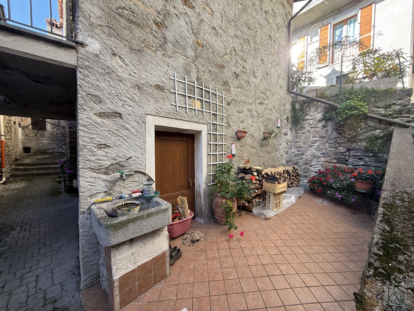 Neben dem Haupthaus befindet sich ein kleines Nebengebäude von ca. 30 m², bestehend aus einem Hobby-/Abstellraum mit Holzmezzanin und externem Bad, sowie einem Keller im Erdgeschoss und einem kleinen privaten Innenhof.